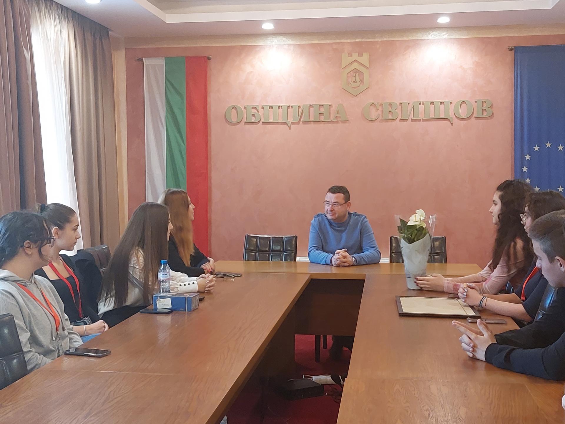 По повод предстоящия 12 октомври – Ден на българската община, представители на Ученическия съвет към СУ „Цветан Радославов“ – Свищов посетиха Община Свищов, където бяха гости на кмета Генчо Генчев.