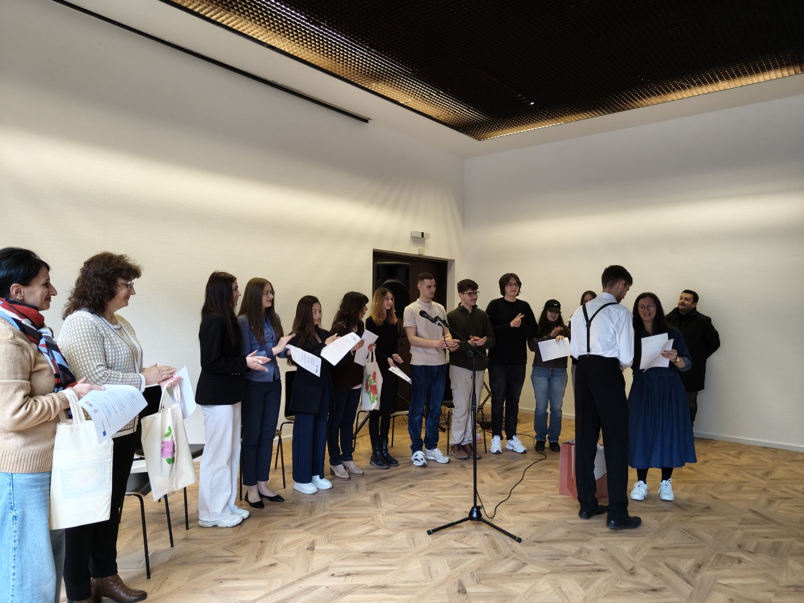 В последната вечер учениците и техните ръководители: госпожа Лиляна Иванова, госпожа Цветанка Костова, госпожа Велина Атанасова и госпожа Юлия Мочкова получиха сертификати за осъществените дейности по мобилността и имаха удоволствието да представят пред българската общност, в сърцето на красива Виена, и своя поетичен спектакъл „ПоетиТе – Майката, Любимата, Родината“.