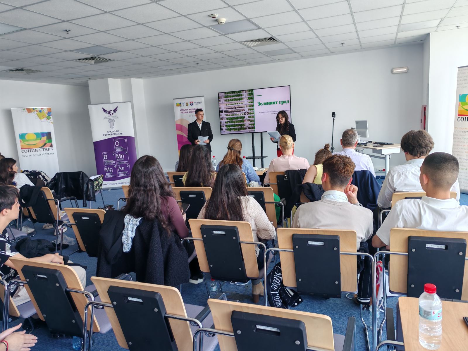 Във форума участие взеха ученикът Златомил Златев и неговият ментор г-жа Красимира Петкова, които представиха разработката „ЖИВИЯТ ГРАД (GREENNEST): Модел за устойчиво градско земеделие и социално предприемачество в местната икономика“.