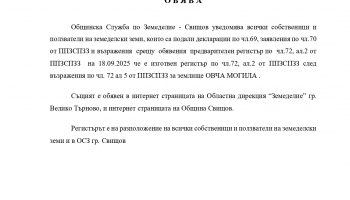 Служба по Земеделие - Свищов уведомява всички собственици и ползватели на земеде...