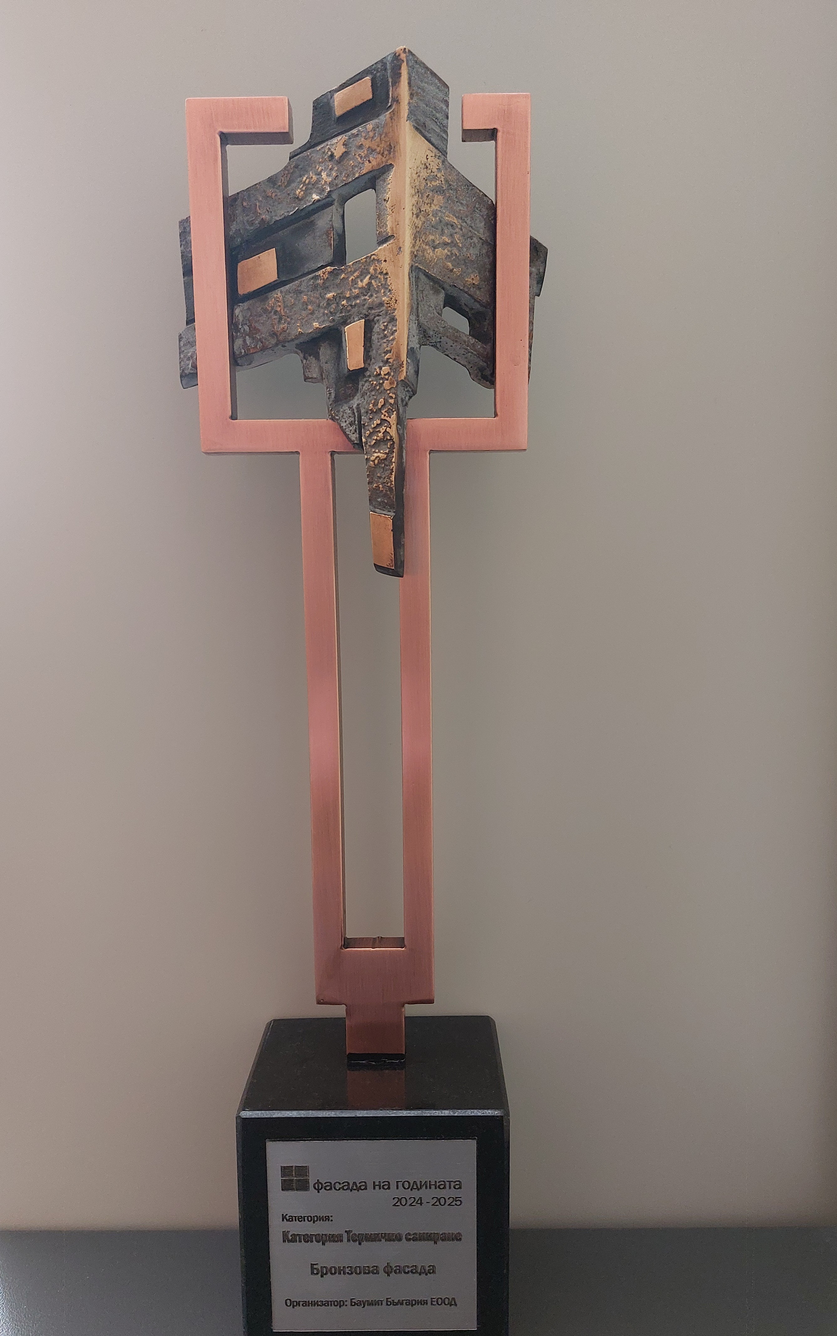 В конкурса, чиято цел е да отличи онези обекти, които съчетават визията на архитектите с висококачествени материали и майсторска изработка, бе номинирана ДГ "Чиполино" в гр. Свищов, която през изминалата година беше преобразена с изпълнението на проект за енергийна ефективност на сградата. Детската градина беше отличена с "Бронзова фасада", в категория "Термично саниране", а награди бяха връчени на възложителя, който е Община Свищов и фирмата изпълнител. На официална церемония в Киноцентър Бояна отличията бяха получени от секретаря на Общината Любомира Петрова и управителя на фирмата, реализирала проекта.