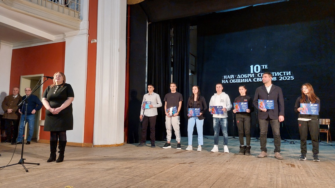 За празничната атмосфера на церемонията по награждаването се погрижиха музикалните и танцови групи към ПБНЧ "Еленка и Кирил Д. Аврамови – 1856": фолклорна формация „Свищовлийче“, с вокален педагог Корнелия Чекелева; кей-поп групата „Фейвър“, с ръководител Габриела Роденова; и голямата възрастова група на Детско-юношеския танцов ансамбъл „Дунавска младост“, с ръководител Петя Петрова и корепетитор Георги Герчев. Всички те обраха много овации за чудесните си изпълнения, но най-аплодирани бяха отличените спортисти на община Свищов за 2025 година, които в различните категории са както следва: