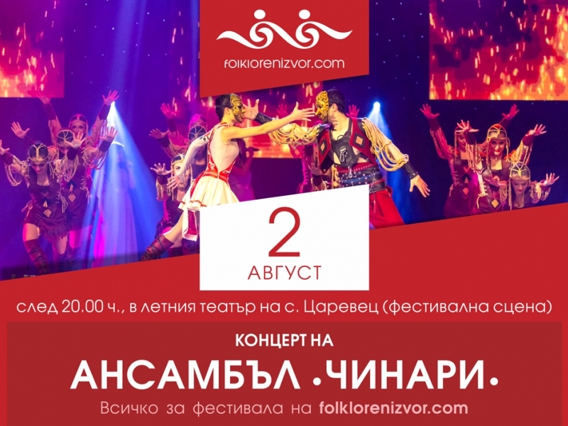 За първи път ансамбъл „Чинари“ ще гостува на „Фолклорен извор“ с концерт, който ще се състои на 2 август (петък), след 20.00 ч. в летния театър на с. Царевец.