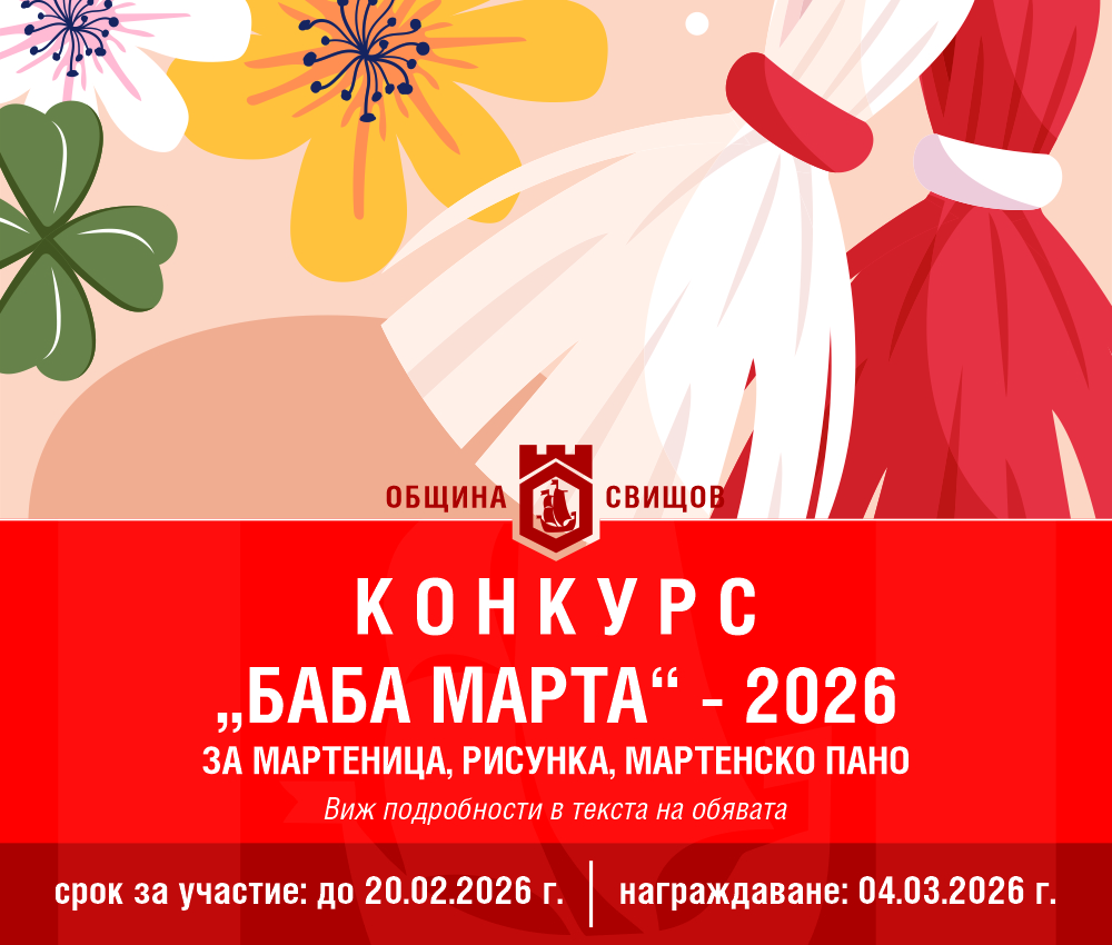 Община Свищов, дирекция „Култура и културно наследство“ и отдел „Образование и младежки политики“ обявяват конкурс за рисунка, мартеница и мартенско пано 2026.