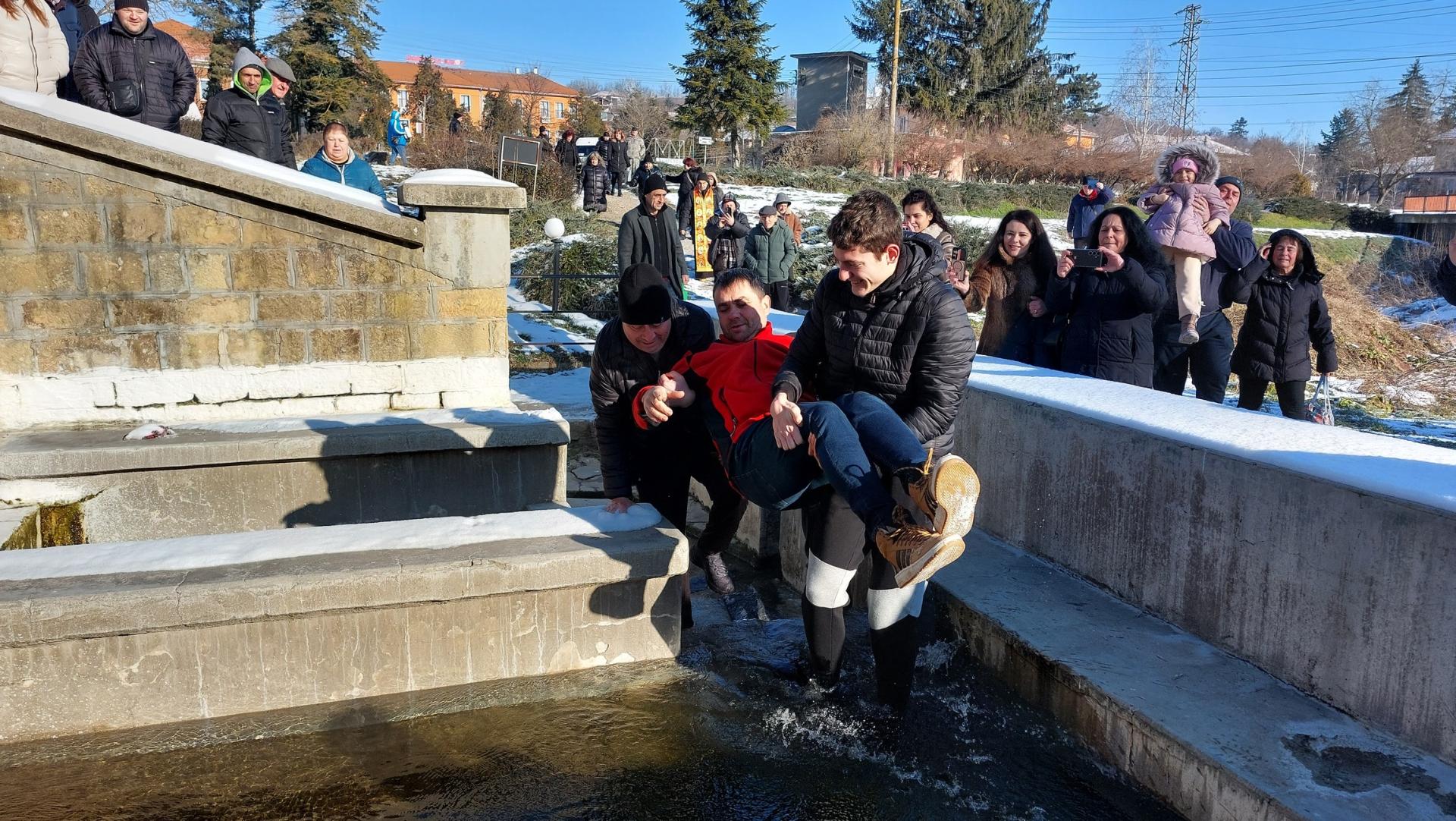 На обичая „Къпанки“ младоженецът Тома Савов бе окъпан за здраве в ледените води на чешмата в с. Царевец