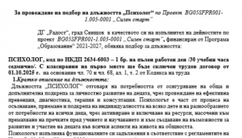 ОБЯВА ЗА ПРОВЕЖДАНЕ НА ПОДБОР…