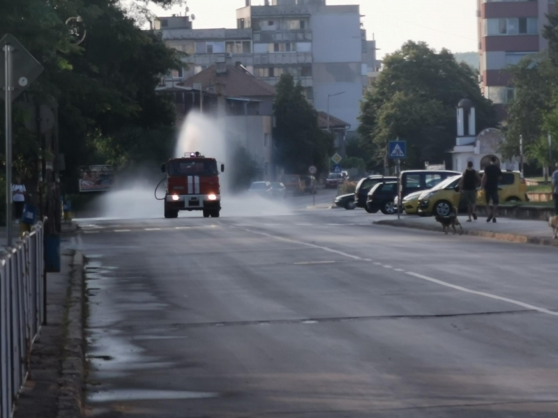 Овлажняване на улиците в Свищов срещу жегата и запрашаването