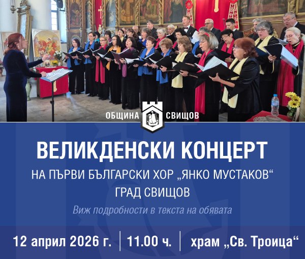 По традиция на Великден Първи български хор "Янко Мустаков" ще изнесе празничен концерт от 11.00 ч. в храм "Св. Троица".