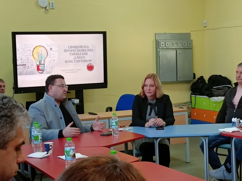 Директорът на Свищовската професионална гимназия „Алеко Константинов“, инж. Веска Николова, представи професиите и модерната база на училището, което е оборудвано с най-нови технологии и съоръжения за професионално обучение. Тя акцентира върху възможностите, които училището предлага на своите ученици за развитие на практически умения, съобразени с изискванията на съвременния пазар на труда.