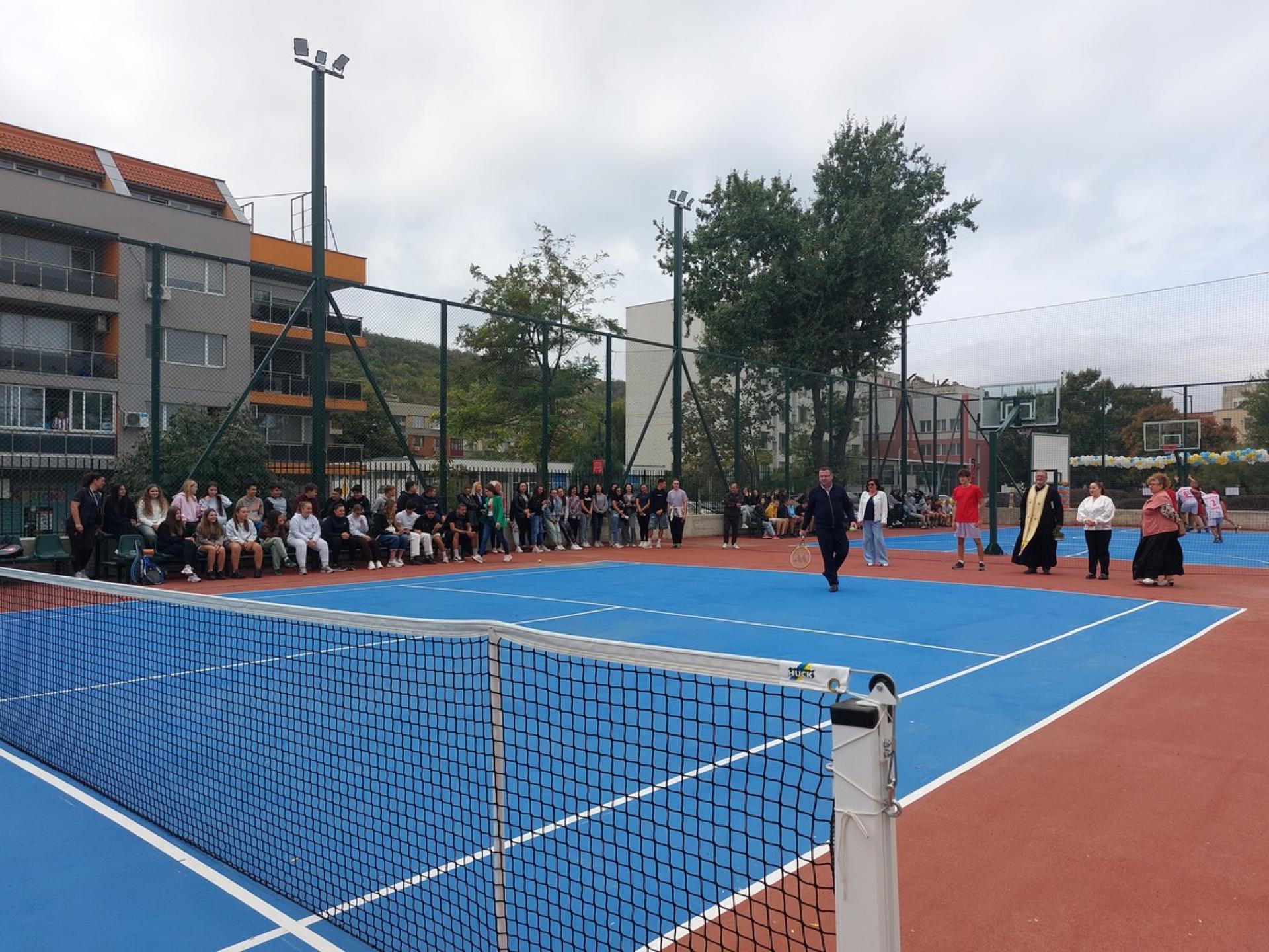 Днес в СУ "Димитър Благоев", гр. Свищов официално бяха открити втори STEM център и нова спортна площадка за мини баскетбол и тенис на корт. Кметът на общината д-р Генчо Генчев и директорът на училището Ани Кирова прерязаха заедно лентите на новите придобивки като пожелаха на учениците здраве, много спортни и образователни успехи.